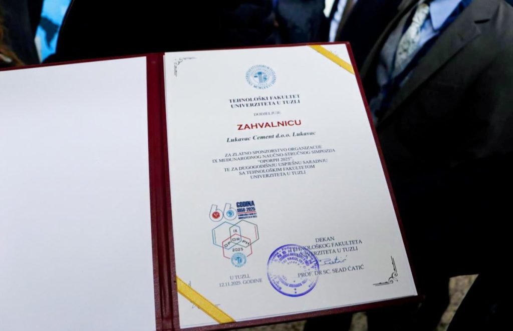 (Lukavac, 13.11.2025.) Na Tehnološkom fakultetu Univerziteta u Tuzli održava se IX međunarodni naučno-stručni simpozij “Okolišni potencijali, održivi razvoj i proizvodnja hrane – OPORPH 2025”, čiji Zlatni sponzor i aktivni učesnik je Lukavac Cement.