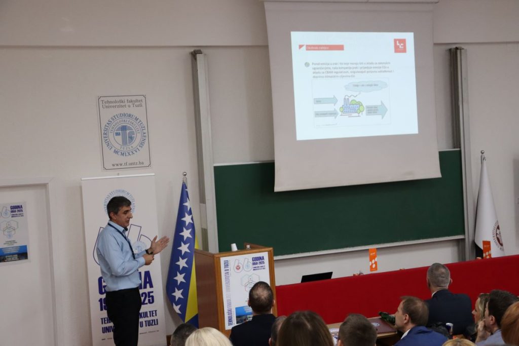 Naš doprinos ovom Simpoziju bilo je i izlaganje kolege Mugdina Imamovića, koji je prezentirao našu kompaniju, a zatim održao i stručno predavanje pod nazivom “Okolinski zahtjevi – smanjenje emisije CO₂“.